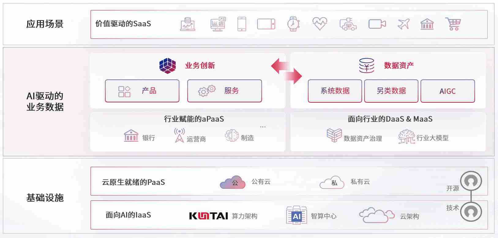 数字时代,,,围绕企业数字化转型的关键要素,,,,NG集团数码开创性的提出数云融合战略和技术体系框架,,着力在云原生、、数字原生、、、、AI原生和信创产业上架构产品和服务能力,,为处在不同数字化转型阶段的快消零售、、、汽车、、、、金融、、、、医疗、、政企、、、、教育、、、运营商等行业客户提供泛在的敏捷IT能力和融合的数据驱动能力,,,构建跨界融合创新的数字业务场景和新业务模式,,助力企业级客户建立面向未来的核心能力和竞争优势,,,,全面推动社会的数字化、、智能化转型升级。。。