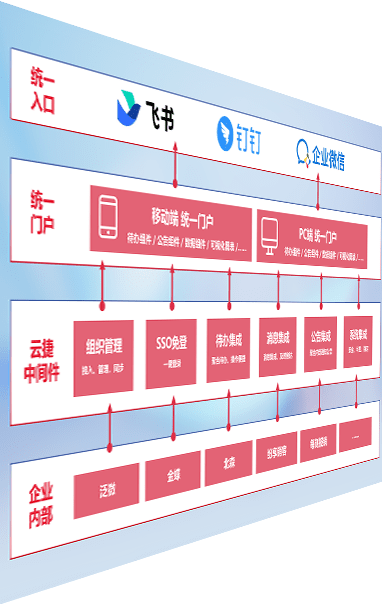 对协作平台提供支持服务,,,,支持企业应用与协作平台对接,,,包含组织同步、、、、消息集成、、、、待办集成等。。。。支持目前主流的协作平台:钉钉、、、、企微和飞书。。。